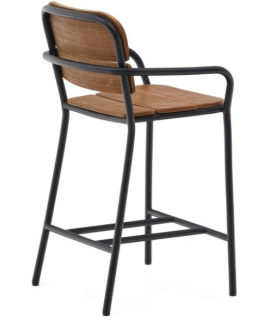 Eine schlichte und faszinierende Linie zeichnet diesen Fußbank mit Armlehnen aus, der seine Zugehörigkeit zum Industriestil unterstreicht. Hergestellt mit einer Struktur aus hochbeständigem schwarzem Aluminium und Sitz und Rückenlehne aus massivem Eukalyptusholz. Ein auffälliges Design, das durch die natürliche Maserung des Holzes noch wertvoller wird und jedem Stück eine besondere Note verleiht, sodass es sich vom anderen unterscheidet. Geeignet für den Innen- und Außenbereich.
