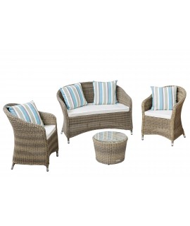Wundervoller und bequemer Outdoor-Sessel mit enthaltenen Maßnahmen, einer raffinierten und frischen Linie. Für das Mittagsschläfchen ist es schön, auf diesem umhüllenden Sessel im Grünen oder auf einer Terrasse mit einem wunderschönen Panorama zu entspannen. Mit starker Struktur aus taubengrauem Kunststoffgeflecht und Sitzkissen aus cremefarbenem wasserabweisendem Stoff.