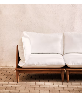 Faszinierender und eleganter Landhausstil für diese modularen Ecksessel mit massiver Teakholzstruktur und mit bequemen Kissen aus wasserabweisendem Stoff und mit abnehmbaren Bezügen, um zusätzlichen Komfort zu gewährleisten. Bequem und angenehm. Ideal zum Kombinieren mit den anderen Accessoires der gleichen Linie, um sowohl drinnen als auch draußen stilvoll einzurichten, siehe unten.