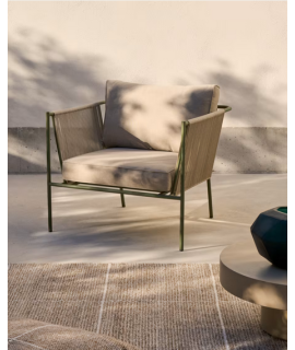 EDFU Sessel aus ecru Kunststoffseil und grünen Beinen aus verzinktem Stahl