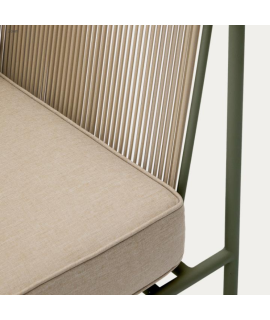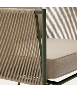 Bequemer Sessel aus ecru Polyesterseil, Rahmen aus grün verzinktem Stahl, sehr witterungsbeständig. Äußerst praktisch für drinnen und draußen. Sie können es in den Sommermonaten herausnehmen, um im Freien zu bleiben und Ihren Garten oder Ihre Terrasse in Gesellschaft von Freunden zu genießen. Ein mediterraner Stil, frisch und mutig, der Modernität mit Tradition verbindet. Die design und großzügigen Sitzmaße sorgen für ein einzigartiges Komforterlebnis. Nachfolgend finden Sie weiteres Zubehör aus der gleichen Linie.