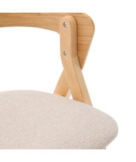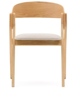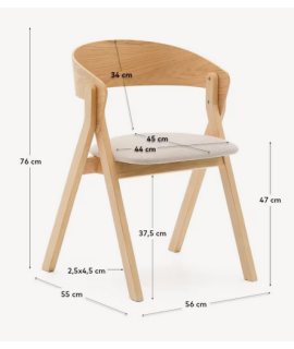 Schöner und solider Stuhl mit eleganter Linie und neuem Look. Es ist äußerst raffiniert und besteht aus einer robusten Struktur aus massivem Gummibaumholz mit Esche naturbelassen und einer Rückenlehne aus Eschenfurnier mit Esche naturbelassen. Es besticht sowohl durch seine Ästhetik als auch durch seine Funktionalität. Es ist wunderbar und bequem und verfügt über eine gepolsterte Sitzfläche mit beigem Chenillebezug. Faszinierend, mit schlichtem Design und starkem Charakter.