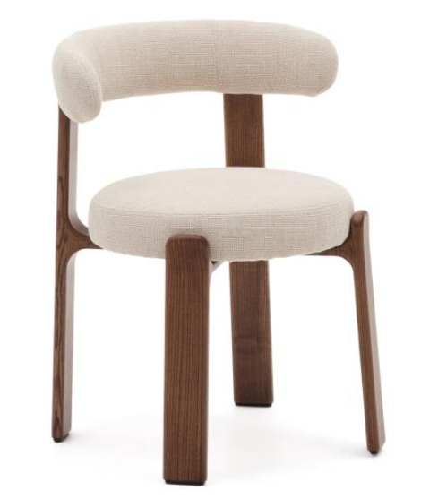 BAJONNOJ Stuhl aus beigem Stoff mit Chenille Effekt und Beinen aus Eschenholz mit Walnuss Finish