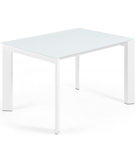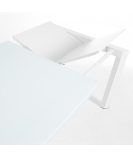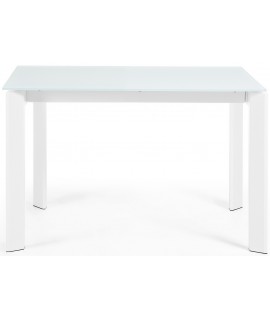 CALENDA 120 oder 140 oder 160 cm ausziehbarer Tisch mit weißer Glasplatte und weißen Metallbeinen