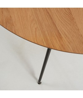 Ausziehbarer Tisch mit minimalistischem Design, raffiniert und diskret. Hergestellt aus Eichenholz und schwarz lackierten Metallbeinen. Langlebig und praktisch, erweiterbar mit einer praktischen Schiebeöffnung. Stark, stabil und einladend, mit bequemen und bequemen Standbeinen für alle Ihre Gäste.