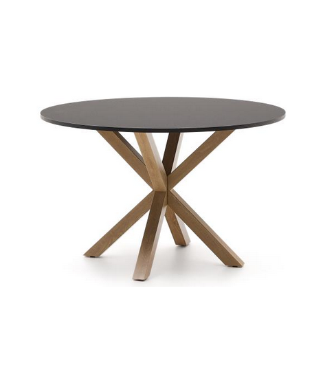 ALBINO Tischplatte mit 120 cm Durchmesser schwarze Platte und Metallbasis in Holzfarbe Design