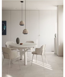CHICAGO Ø 120 ausziehbarer Tisch 160 cm mit glas und lackierten Metallbeinen Designmöbel