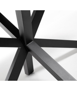 Schöner und repräsentativer Tisch mit einem besonderen und wunderbaren gekreuzten Fuß aus Schwarz Metall. Platte aus Porzellan, verstärkt mit weißem Marmoreffektglas. Steinzeugkeramik ist ein neues Material, das sich ideal für Esstische oder Studioarbeitstische eignet, das nicht nur sehr solide und widerstandsfähig ist, sondern seine Eigenschaften auch im Laufe der Zeit unverändert beibehält, sehr stoßfest, flecken- und flüssigkeitsundurchlässig ist und hohen Temperaturen standhält.