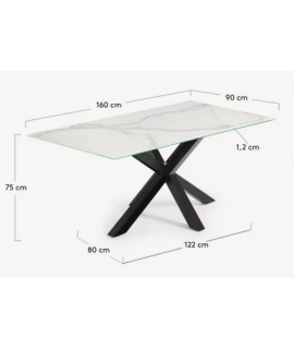 Das Königreich Keramik-Glas für Tischplatten verwendet ist ein Erzeugnis durch die Kombination einer Platte aus Keramik (Porzellan), ein gehärtetes Floatglas. Das Ergebnis ist ein Plan, der hervorragenden ästhetischen Eigenschaften und hervorragende Widerstandsfähigkeit gegenüber alltäglichen Gebrauch vor allem Abrieb, Auswirkungen, Kratzer, Flecken, plötzliche Veränderungen in Temperatur und Chemikalien hat. Es ist leicht zu reinigen und hygienisch, weil es keine Flüssigkeiten aufnehmen und setzt keine Schadstoffe frei. Alle Maße sind auf dem Foto des Datenblattes.