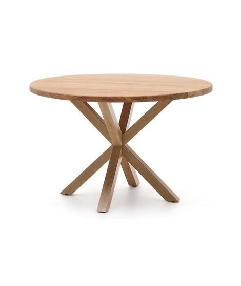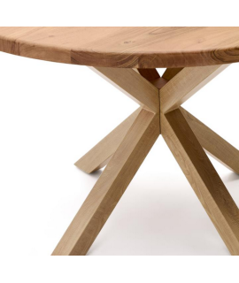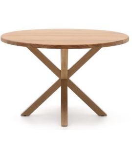 Eine faszinierende Linie mit raffiniertem Design: Dieser wundervolle Tisch mit einem gekreuzten Untergestell aus Stahl in Holzoptik und einer runden Platte aus massivem Akazienholz. Ein angenehmer Tisch für Ihre Umgebung, einzigartig und faszinierend, bei dem Design und Stabilität eine perfekte Balance finden. Ein attraktiver und moderner Look.