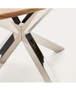 Harmonischer, eleganter und raffinierter OVALE-Tisch mit gekreuztem Edelstahlgestell und massiver Akazienholzplatte. Ein wirklich einladender, einzigartiger und faszinierender Tisch, bei dem Design und Stabilität ihn auszeichnen. Ein attraktiver und moderner Look.