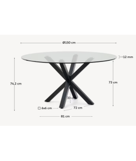 ABREL Ø 150 cm Tisch in Holz lackiertem Stahl und aus gehärtetem Glas mit festem Design