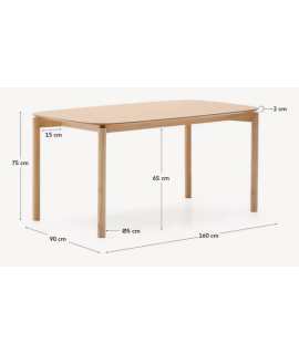 PETTY Tisch 160x90 cm aus natürlichem Eschenfurnier und Massivholzbeinen mit natürlichem Eschenfinish