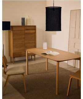 Tisch aus natürlichem Eschenfurnier und Beinen aus Massivholz mit natürlichem Eschenfinish. Mit nordischem Design, schlicht und raffiniert. Eine klare Linie, die sich gut an alle übrigen Möbel anpasst.