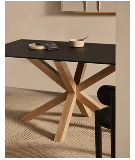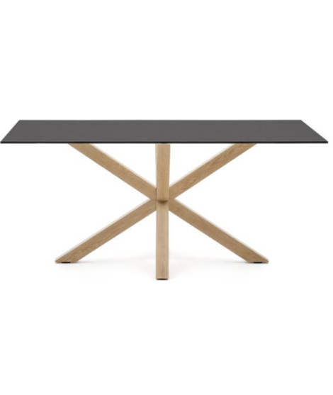 SHANELLE 160x90 cm Designertisch mit holzfarbenen Stahlbeinen und schwarzer Hartglasplatte