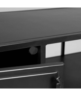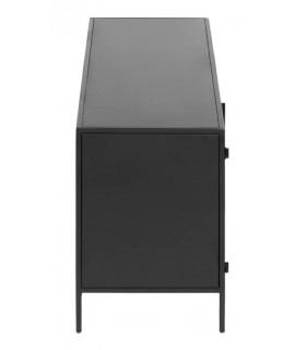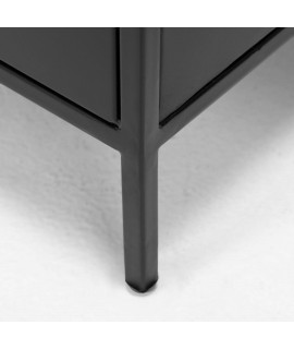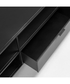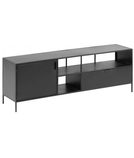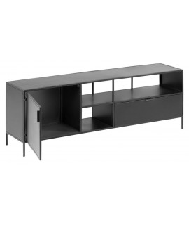 Fantasievoller und origineller TV-Schrank mit kleinen Größen. Ein angenehmer Industriestil, der einem funktionalen und praktischen Schrank Leben einhaucht, zusätzlich zu der faszinierenden und besonderen Ästhetik, die vollständig aus schwarz lackiertem Metall besteht.