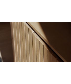 Elegante aparador en madera maciza de mango dispuesto en tiras. Un aspecto moderno atemporal, arenoso y cautivador. Un hermoso aparador, con una línea refinada, un proceso preciso hecho a mano por artesanos expertos, con una atención refinada a los detalles, para sorprender, embellecer y hacer que su entorno sea único.