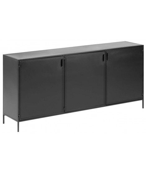 Un aparador o soporte de TV con una línea simple y esencial, con un sabor industrial. En metal pintado de negro con 3 puertas, lo que le da un toque extravagante e intrigante a su entorno. Simple, minimalista, bello y encantador. Apto para hogar u oficina. Bajo todos los complementos de esta línea. Todas las medidas en la foto de la ficha técnica haciendo scroll con la flecha en las fotos.