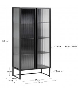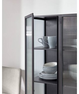 LEE en metal negro y vitrina de vidrio templado vitrina estantería aparador