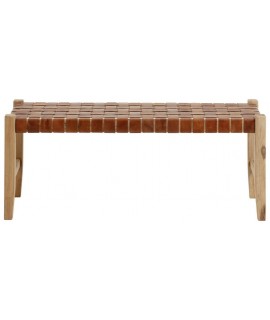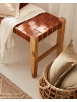 Un encanto único e indiscutible para este banco, hecho con correas de cuero marrón tejidas a mano y estructura de madera maciza. Una verdadera obra maestra, que le dará carácter a su entorno. En ACCESORIOS toda la línea a juego.