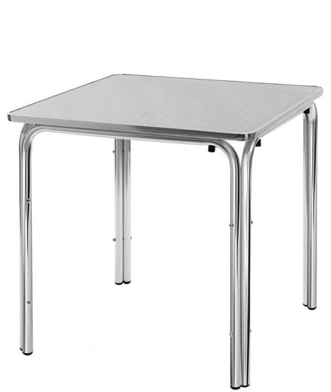 Tabla con acero inoxidable de acero cuadrada y estructura de aluminio anodizado. Disponible en 3 tamaños. Perfecto para bares, cafeterías, residencias, restaurantes, hoteles locales frente a la playa, bed & breakfast, establecimientos de baño. Ideal para sus espacios al aire libre, jardines o terrazas. Elegante y refinado.