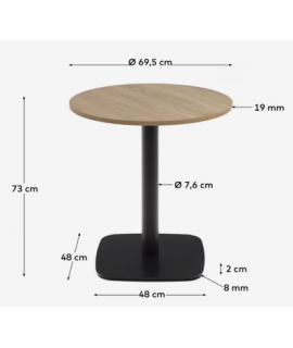 ELISTE tablero diámetro 70 cm en melamina acabado natural y base de metal pintado de negro para bares heladerías y restaurantes