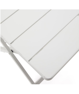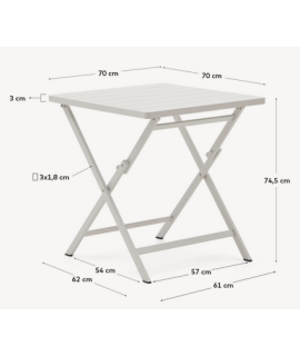 Mesa fabricada en aluminio con acabado en blanco o negro, material ligero y 100% apto para exterior. Con movimiento plegable con asa para guardarlo en cualquier lugar sin ocupar espacio. Un diseño innovador y refinado para esta bonita mesa, práctica y resistente. Ideal para terrazas, balcones, jardines o incluso comercios, bares, heladerías, cafeterías, restaurantes, discotecas, hoteles, establecimientos de playa. Todas las medidas están en la foto de la ficha técnica. A continuación encontrarás las sillas de la misma línea a juego.
