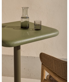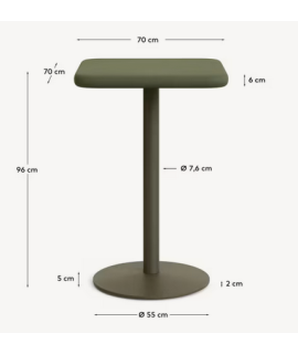EDISCO Mesa 96 cm de alto con tapa de cemento verde de 70x70 y base de metal pintado verde para bares heladerías restaurantes