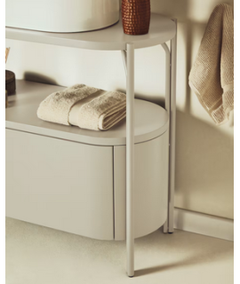 Esta pieza extremadamente versátil presenta una línea suave. Puede colocarse en el salón, en la entrada como una práctica consola o en el baño. Sus materiales prácticos crean un espacio funcional y acogedor, ofreciendo practicidad y organización. Fabricada en MDF lacado hidrófugo, cuenta con un cajón extraíble con mecanismo de apertura a presión y cierre suave. Un maravilloso complemento de decoración que ilumina la estancia. Intrigante y refinado, audaz y dinámico, destaca por su practicidad y su diseño elegante.