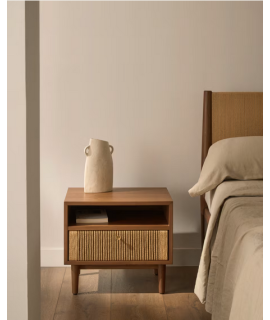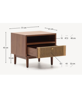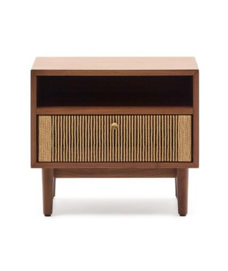 BOLO mesita de noche chapado en nogal y cuerda y patas en madera maciza de nogal