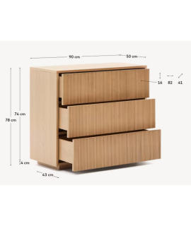 GERUSAL cómoda 90x80h cm con cajones en chapa de roble