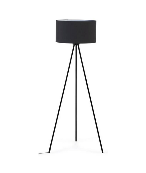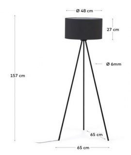Perfecto para una decoración moderna, clásica o nórdica. Lámpara de pie realizada con trípode de metal pintado y pantalla de tela en negro. Para portalámparas E27 grande (no incluido). Todas las medidas están en la foto de la ficha técnica.
