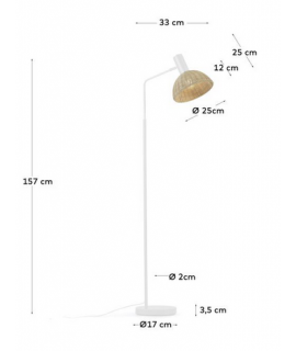 PANAMA lámpara de pie en metal blanco y ratán natural