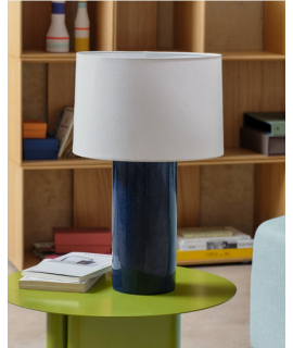 SCIROCCO Lámpara de mesa de cerámica azul y algodón beige