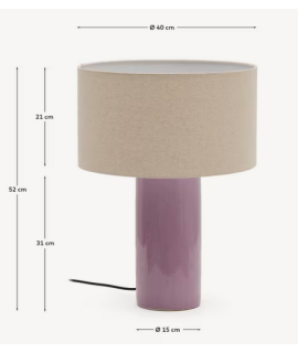 CENTUS Lámpara de mesa de cerámica lila y algodón beige