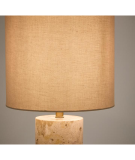 FEDEX Lámpara de mesa de mármol beige y pantalla de lino gris