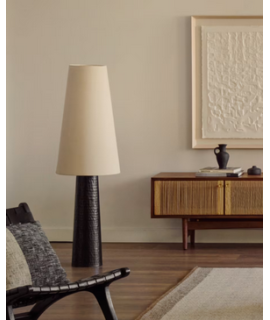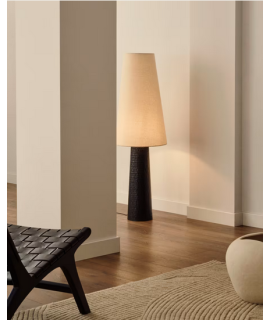 Maravillosa lámpara de pie con un estilo moderno. Fabricada en metal negro y pantalla de tela. Una línea cautivadora que se desmarca de las lámparas habituales.