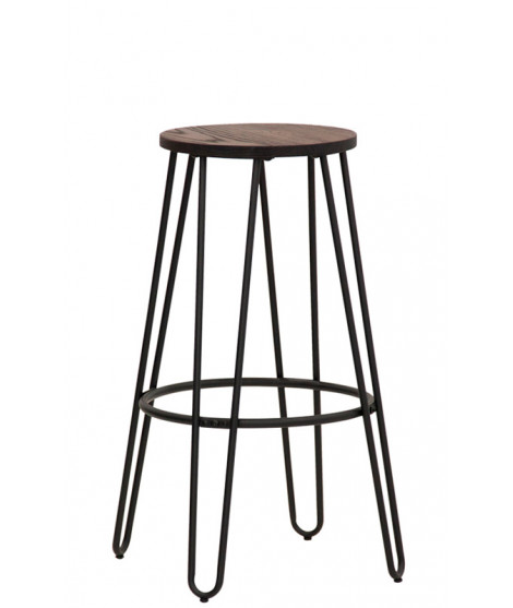 Taburete intrigante con un diseño industrial vintage, en metal negro y asiento de madera, transmite tradición y autenticidad. Su estilo "lo viejo" captura y nos transporta al pasado. Un estilo urbano que fascina, apto para una zona de snack o una península para la cocina, pero también bares o discotecas exclusivas.