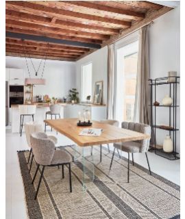 Silla hermosa y refinada, una línea importante que da prestigio a sus muebles. Acolchado y tapizado en tejido borrego a elección del color y con patas en metal pintado de negro. Muy cómodo y elegante, un mueble único y exclusivo.