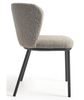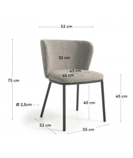Apto para cualquier tipo de mueble. Silla elegante y refinada, pero además del diseño también es muy cómoda con el respaldo envolvente y el asiento alto. De gran prestigio y solidez, con tapizado moderno en suave borrego, color a elegir: blanco, gris claro o gris oscuro y patas de metal negro. Capacidad máxima 130 kg. En la foto de la ficha técnica están todas las medidas. A continuación encontrará los taburetes de la misma línea a juego.