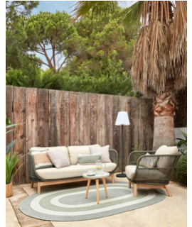 Sofá de 3 plazas con estructura de madera maciza de acacia tratada con aceite PNZ de larga duración y protección UV, revestimiento de cuerda de poliéster resistente a los rayos UV y a la intemperie, cojines en tejido hidrófugo, totalmente desenfundables y lavables. Capacidad máxima 320 Kg. Ver abajo el sillón a combinar con la misma línea. En la foto de la ficha técnica están todas las medidas.