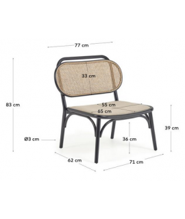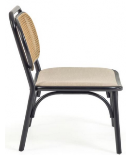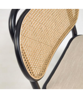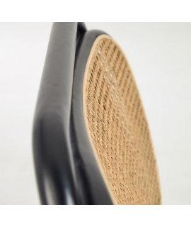 MORGAN sillón de madera maciza de roble negro con respaldo de mimbre y asiento de tejido hidrófugo