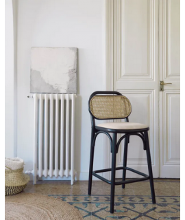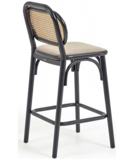 MORGAN taburete asiento h 65 cm de madera maciza negro de roble con respaldo de mimbre y asiento de tejido hidrófugo