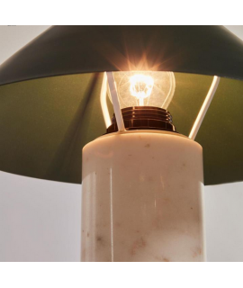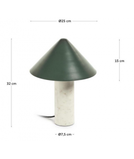 Preciosa y fantasiosa lámpara de sobremesa, realizada en mármol blanco y metal pintado en verde. Adecuado para la sala de estar, el estudio o el dormitorio. Predispuesto para lámpara E27 (no incluida), bajo consumo o bajo consumo, lámpara led o incandescente. Longitud del cable 220 cm. Todas las medidas están indicadas en la foto de la ficha técnica.