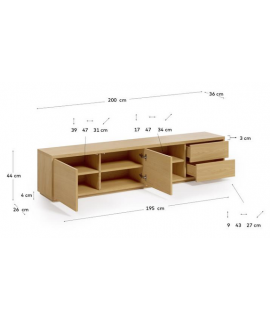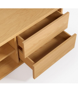 Mueble de TV refinado en chapa de roble. Estructurado con 2 puerte push-to-open, 2 cajones con correderas de cierre gradual y compartimento con balda y orificio para cables. Shallow ocupa poco espacio y al mismo tiempo es espacioso, práctico y funcional. Intrigante e impresionante por su esencialidad, un mueble sólido, con una linealidad y un brillo que conquista. Todas las medidas en la foto de la ficha técnica.