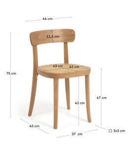 Una silla tradicional muy actual, que responde bien a las nuevas necesidades de decoración. Muy cómoda con asiento de ratán reforzado para evitar el desgaste y estructura de madera maciza de haya resistente y resistente. Mínimo y esencial, perfecto en cualquier decoración, desde clásica hasta moderna. Capacidad máxima 120 Kg. En la foto de la ficha técnica están todas las medidas. A continuación encontrarás el taburete y el cojín a juego.