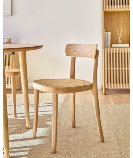 Maravillosa silla en haya natural, con un diseño clásico renovado, con cómodo asiento de rattan. Un sabor muy refinado que se adapta a todos los ambientes.