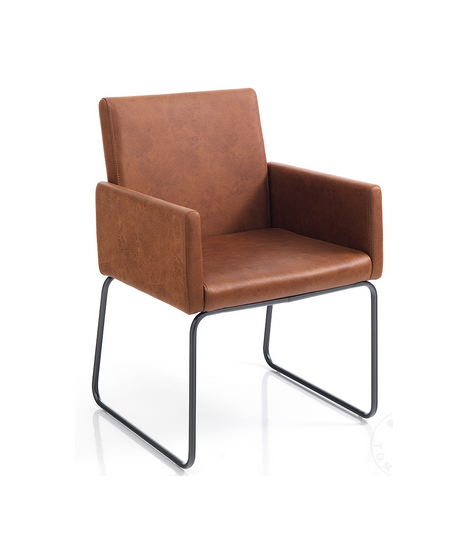 EMMA en ecopiel marrón efecto envejecido y estructura de acero negro silla sillón diseño contract o hogar