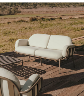 Cómodo y refinado sofá de 2 plazas, apto para uso exterior o interior gracias a la practicidad de los materiales con los que está fabricado. Estructura ligera de aluminio, fabricada en talleres locales, reduciendo las emisiones de CO2 para un menor impacto ambiental. Relleno de poliuretano con asiento apoyado y funda de tejido desenfundable y lavable a máquina. Capacidad máxima 200 Kg. A continuación encontrará todos los accesorios de la misma línea para combinar. Todas las medidas están en la foto de la ficha técnica.