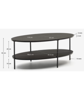 JANUS mesa de centro 110x65 cm tapa de cristal templado y estructura de metal negro